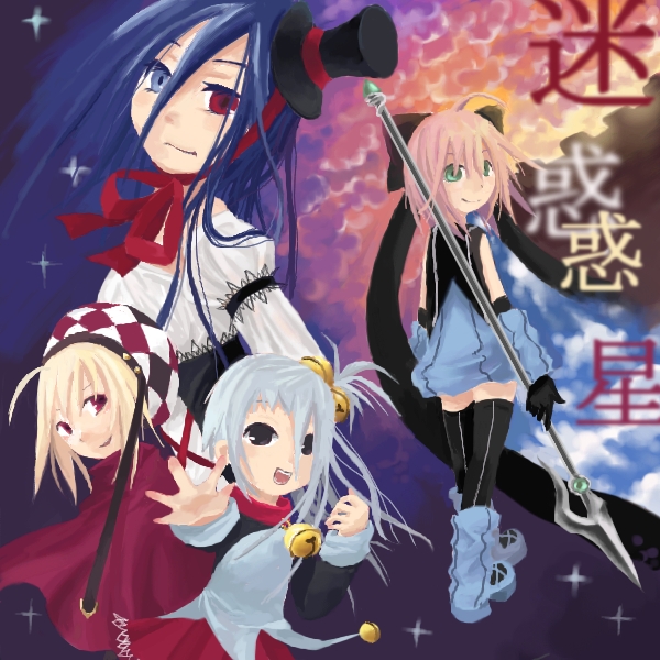 ちなみに、紺色髪が真(マナ)、金髪がらいあ、水色髪が空(クウ)、ピンク頭が冥(メイ)。